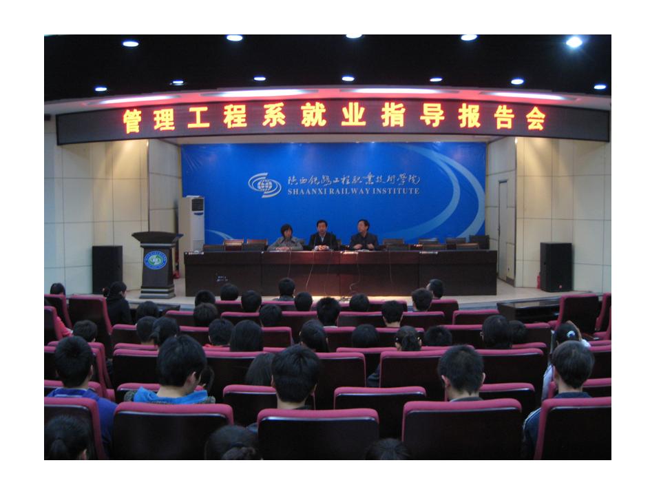 3月30日下午,管理工程系就业指导报告会在报告厅举行。此次报告会由人才招聘处郗春荣处长、王雪老师主讲,系党总支书记毛华东老师主持,辅导员老师及2011届毕业生听取了报告。