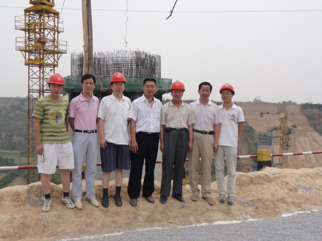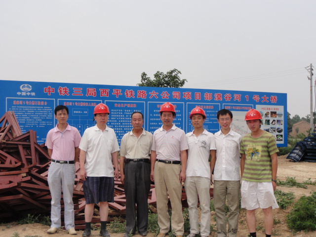 在漠谷河1号大桥工地与师生、同大铁道监理公司监理站张主任等合影