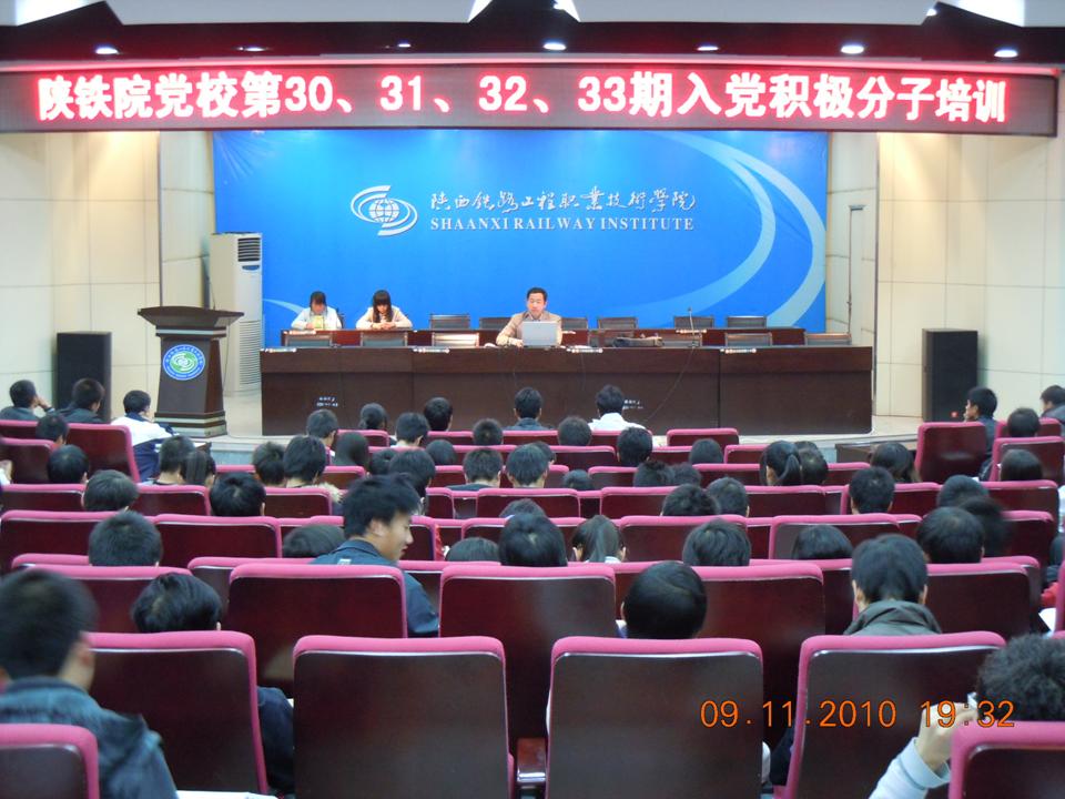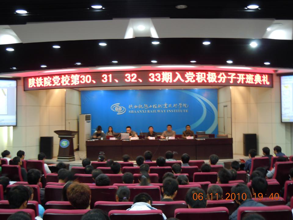 11月6日晚19:30,中共公司第30、31、32、33期党校培训班在学术报告厅开班,轨道工程系、建筑工程系、管理工程系、机电工程系党总支书记和360名入党积极分子参加了开班仪式。为提高培训班效率,本次党校培训安排4期合班上课,各系党总支单独组织结业考试。第32期党校管理工程系培训班11月13日结束。