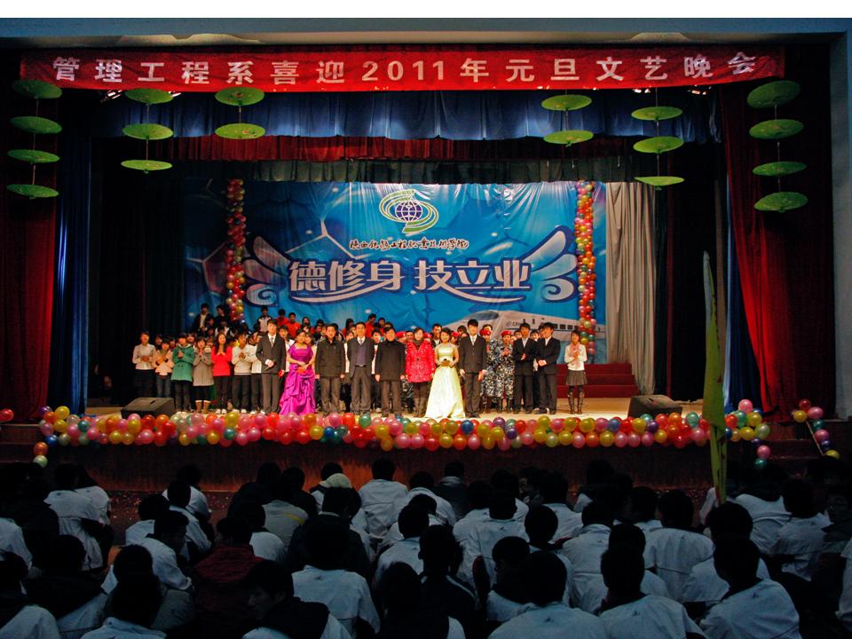12月16日晚,管理工程系在公司文体中心举办喜迎2011年元旦文艺晚会。公司经理王长友、副经理杨云峰以及员工处、系部领导,管理工程系、轨道工程系、测绘工程系1000多名师生共同观看了晚会。
