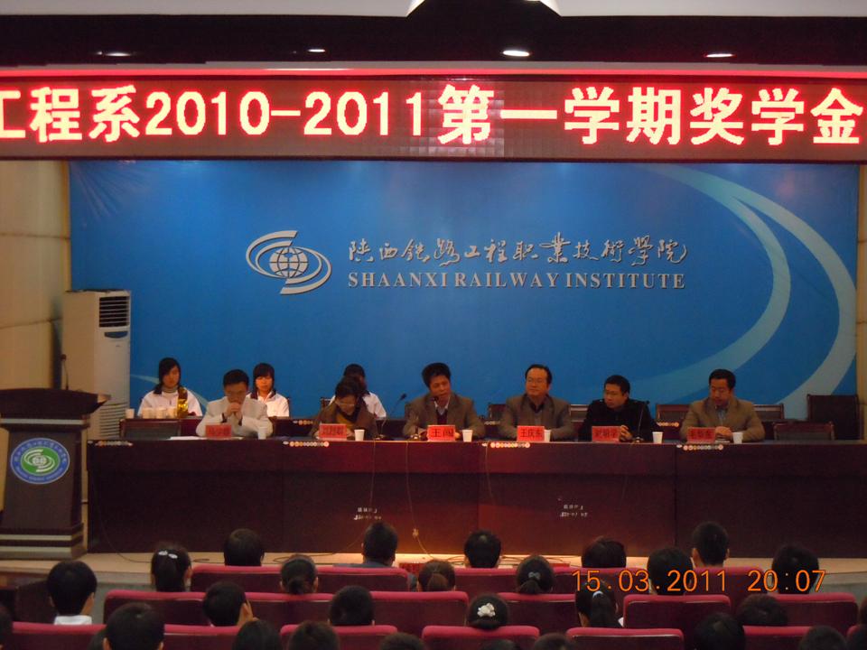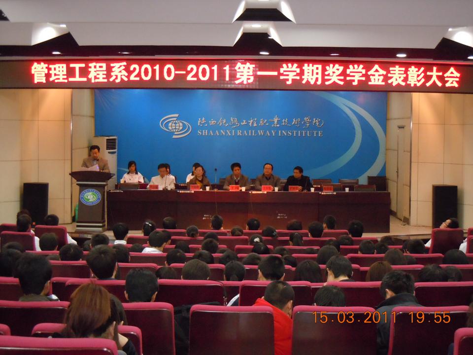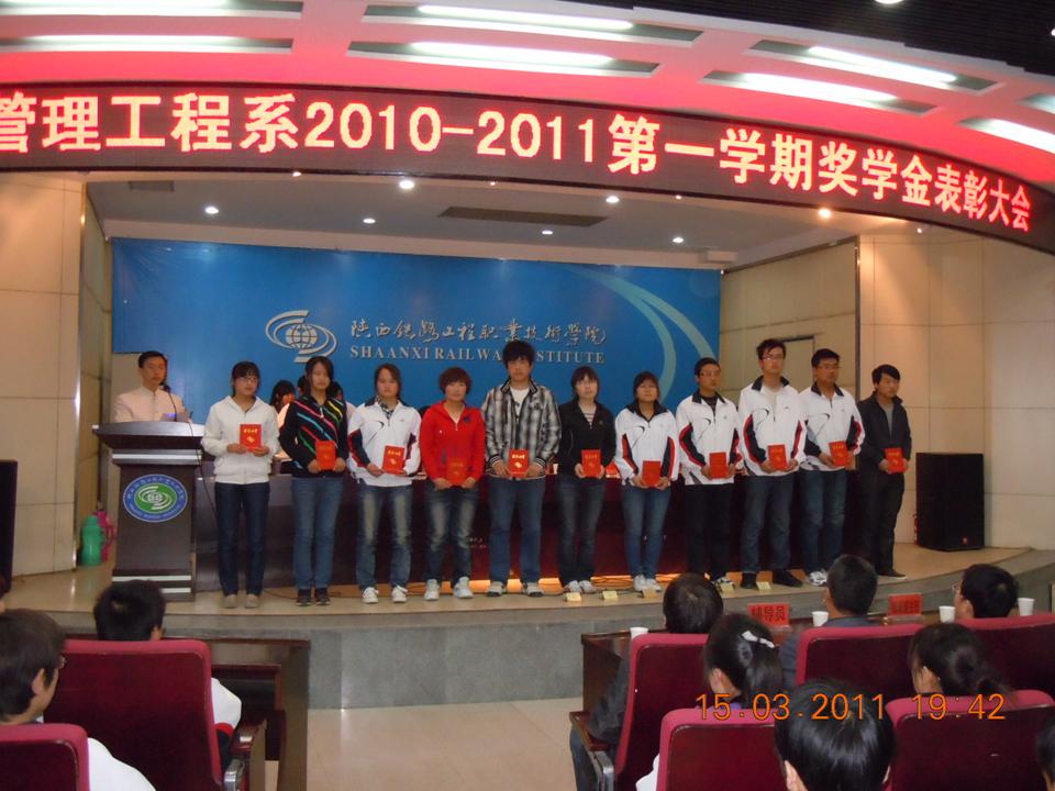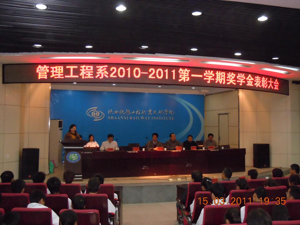 3月15日晚,管理工程系在学术报告厅召开2010-2011学年第一学期奖学金表彰大会。公司王闯副经理出席大会。员工处、院团委、管理工程系负责人、系教研室主任、辅导员班主任及在校的全体员工参加了大会。大会由管理工程系团总支书记马少雄主持。