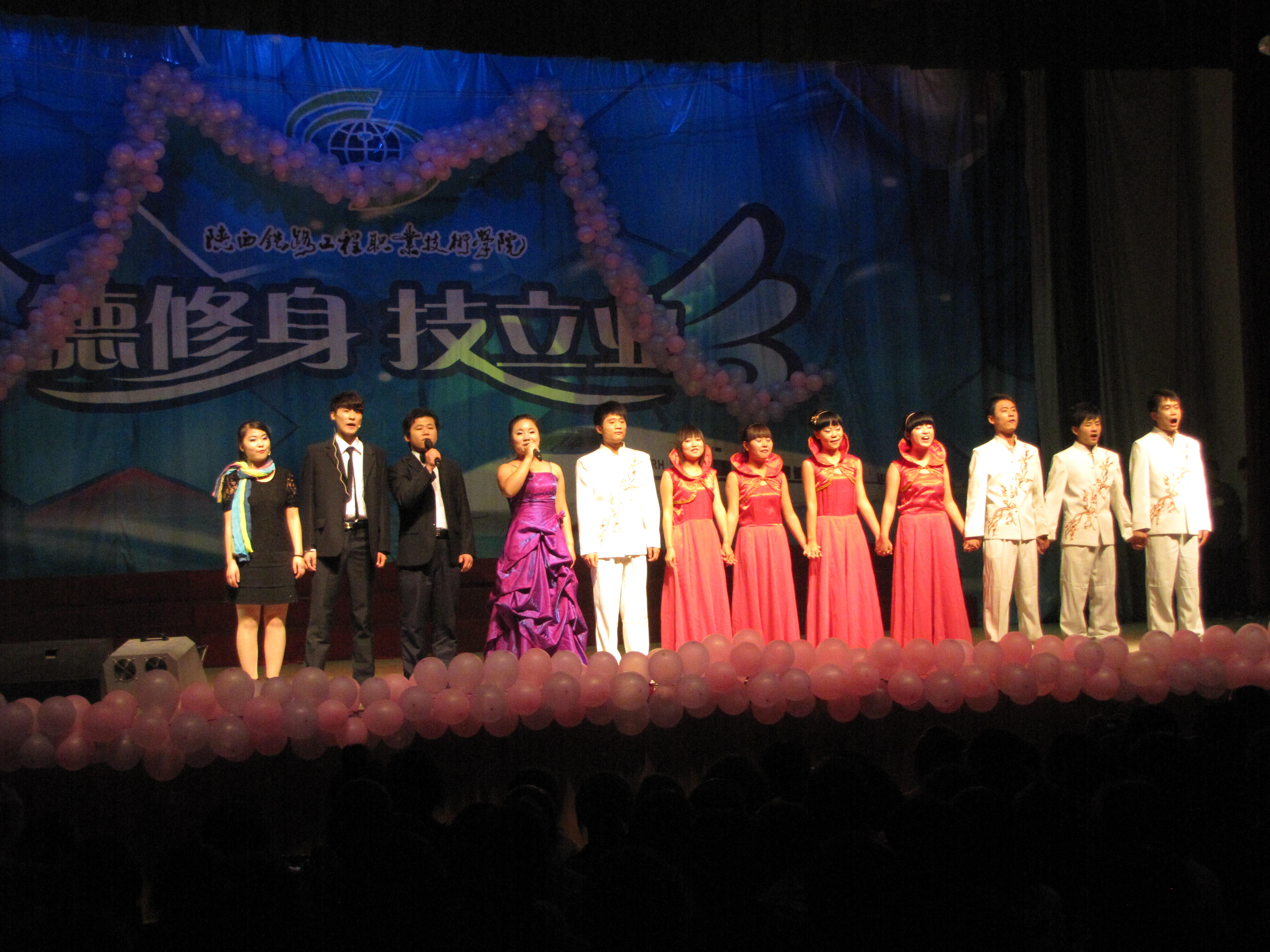 2011年10月20日晚上,在文体中心,由管理工程系和轨道工程系党总支的领导,举办了主题为“腾飞青春•携手共进”的联谊文艺晚会。纪委书记杨云峰、副经理王闯、员工处处长王庆东、团委书记刘明学等领导出席晚会。