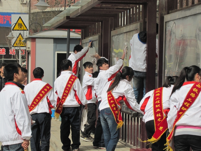阳春三月,春暖花开,为了弘扬雷锋精神,让人们享有舒适整洁的乘车环境,管理工程系组织建管3112班和物流3115班于3月23日下午在渭南市汽车客运站和公交汽车站进行义务清洁劳动。