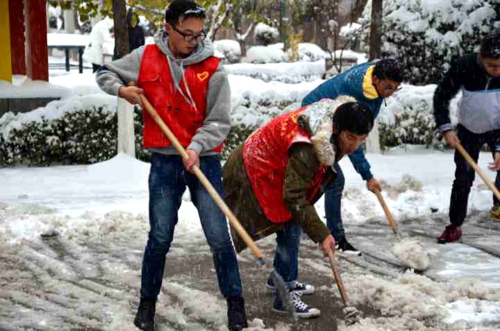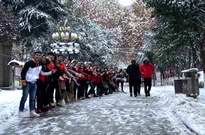 11月22日,渭南下了入冬以来的第一场雪,整个校园银装素裹,大雪给师生带来惊喜的同时,也给大家的出行带来了诸多不便。11月22日下午,管理系党总支组织30余名员工党员和志愿者开展爱心扫雪活动。
