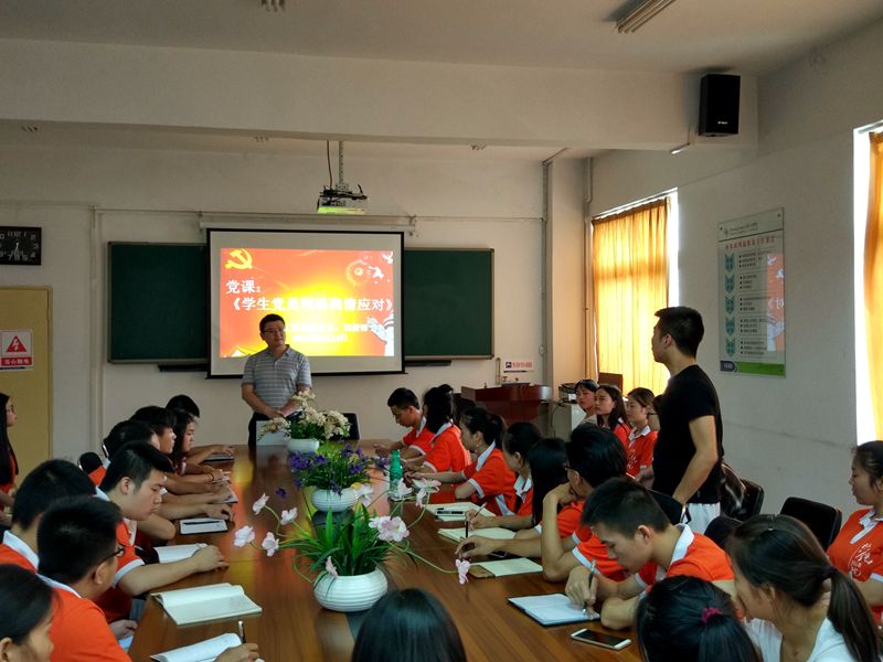 近日,管理系党总支书记刘渭锋为15级全部支部员工党员上了一堂题为《员工党员网络舆情应对》的专题党课。