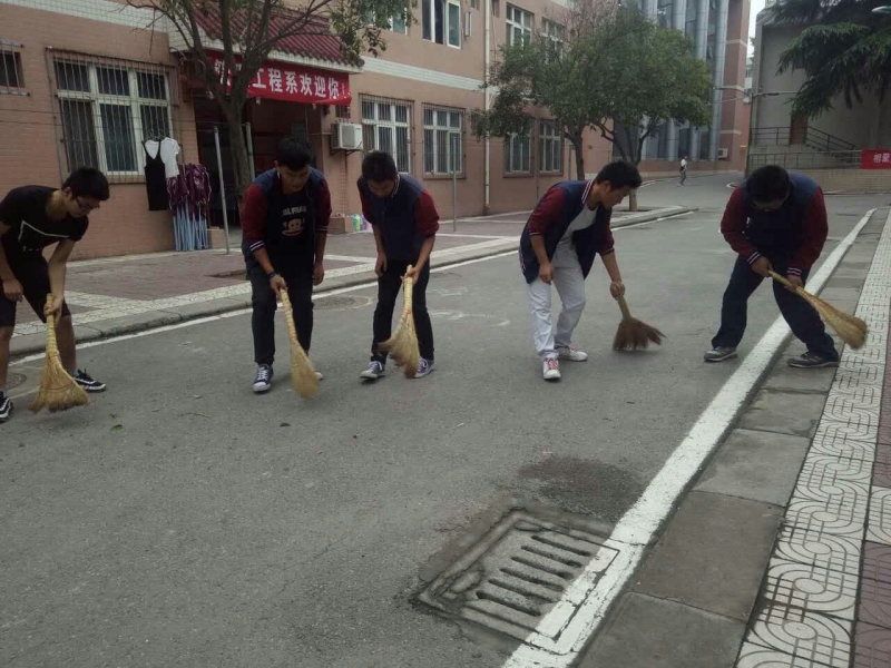 新学期伊始,为创建舒适、美好的校园学习生活环境,9月4日中午,管理系党总支28名入党积极分子在辅导员陈浩龙的带领下开展了党员责任区清扫活动。