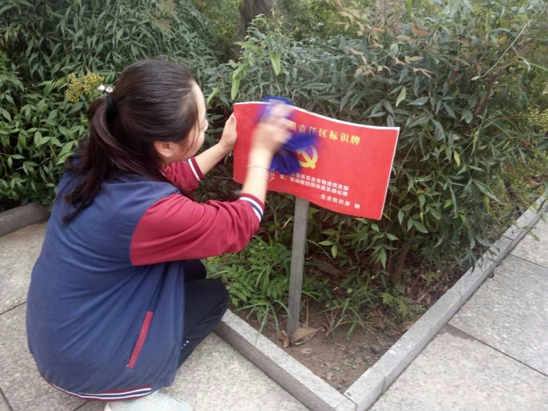 大家自带劳动工具,利用午休时间来到党员责任区,分工协作,擦洗党员责任区标识牌、宣传栏、清扫地面,拔除杂草。大家热情高涨、干劲十足,认真负责,积极打扫,让党员责任区干净,焕然一新。