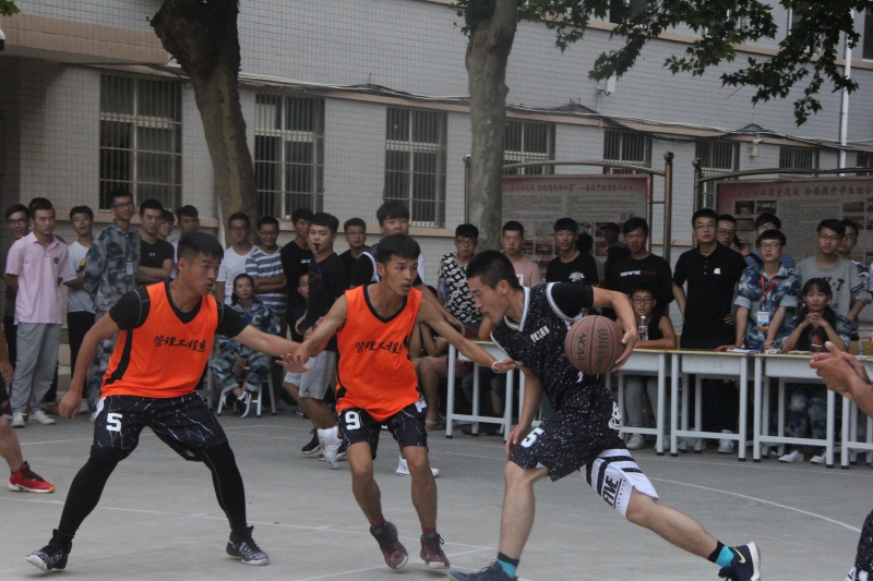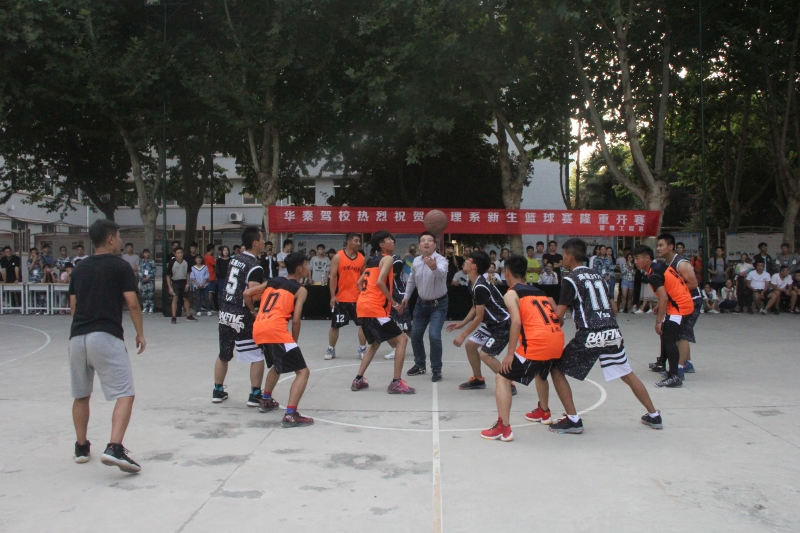 激情赛场,挥洒汗水。9月21日下午,管理系2017届新生篮球赛在临渭校区B楼小操场打响揭幕战。本届比赛共有14支队伍参加,系党总支书记刘渭锋、辅导员吴鹏飞等老师和大一新生共计200余人参加了开幕式。
