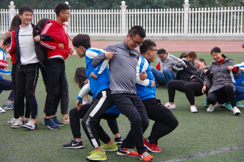本次素质拓展围绕着“坐地起身”、“盲人方阵”、“抢板凳”、“珠行万里”、“无敌风火轮”等系列活动展开,老师和员工共分为四组,各小组成员密切配合,从一次次重复演练到比赛正式开始的齐心协力,从失败到反败为胜,从游戏到每轮游戏结束后的团队反思和总结,在这些看似简单的环节中,处处可以感受到团队合作的力量。尤其在“抢板凳”项目中,每一个人动作机敏,生怕落后,男生展示出了绅士风度,为女生抢板凳,游戏过程充满了欢声笑语和感动。