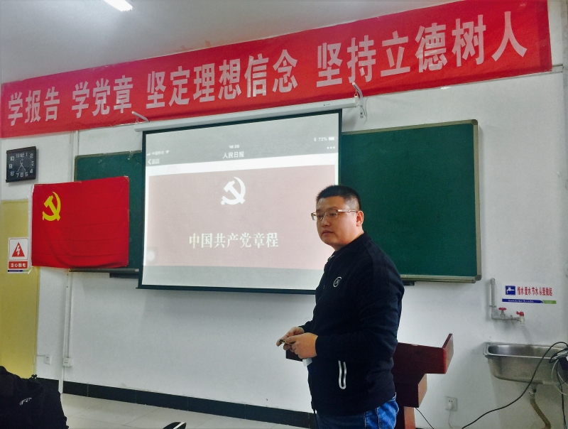 11月6日下午,系党总支书记刘渭锋给所有教工党员上党课,《十九大党章修正内容解读》,对历届党代会修改的党章内容进行了说明,重点对十九大党章修改的10个方面的内容进行了着重介绍。他强调,每一名党员应该认真学习新修改的党章,进一步坚定理想信念,进一步加强道德修养,增强党员意识,履行党员义务,不断提高政治思想觉悟,把党员的先进性具体体现在工作岗位上,落实在立德树人中,真正发挥一个党员应有的先锋模范和积极带头作用。积极为公司发展献计献策,凝心聚力做好本职工作,为德信体育官网建设一流优质公司贡献智慧和力量。每位党员教师聆听后受益颇深,纷纷表示对中国共产党的章程有了进一步的了解和重新认知。