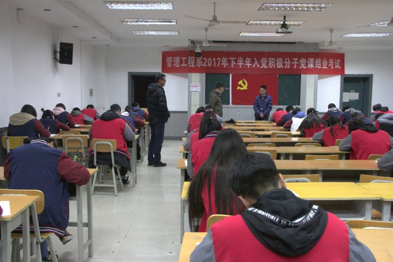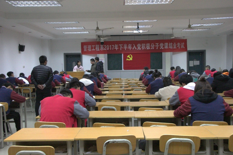 11月26日晚,管理系2017年下半年入党积极分子党课培训结业考试在临渭校区B400、B500教室同时举行。员工工作第一党支部和员工工作第二党支部共有142名入党积极分子参加本次考试。