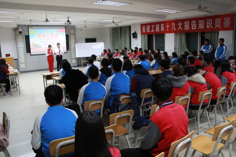 为贯彻《中共中央关于认真学习宣传贯彻党的十九大精神的决定》精神,遵照《共青团中央关于全团认真学习贯彻党的十九大精神的通知》部署,落实“学懂、弄懂、做实”的要求,12月10日晚,管理系举办“十九大报告知识竞赛”活动。