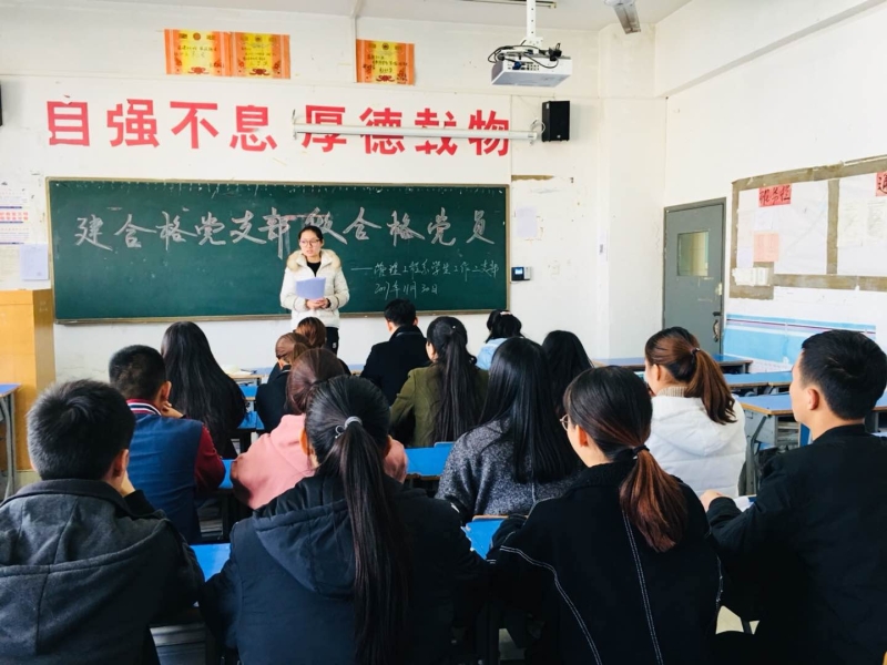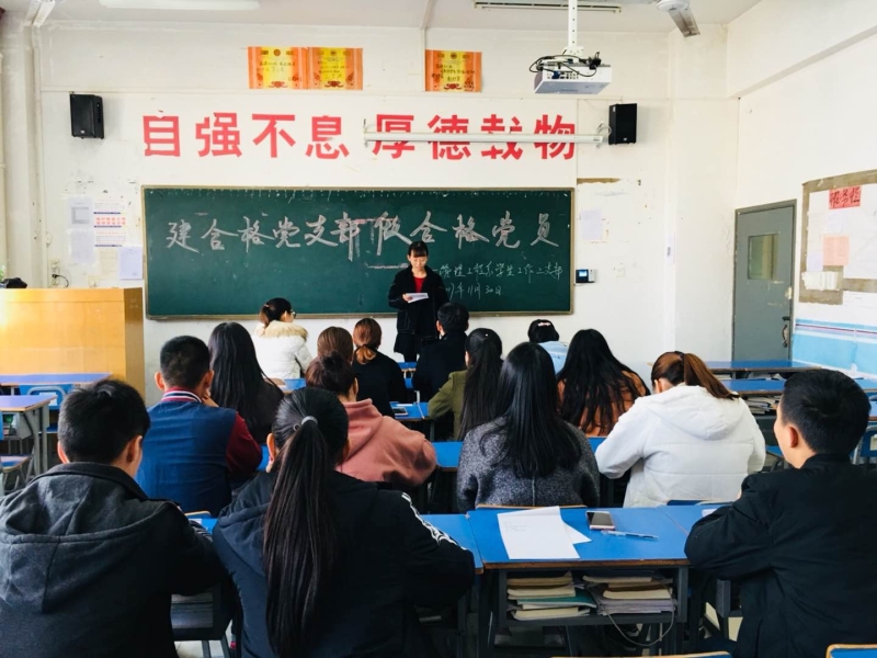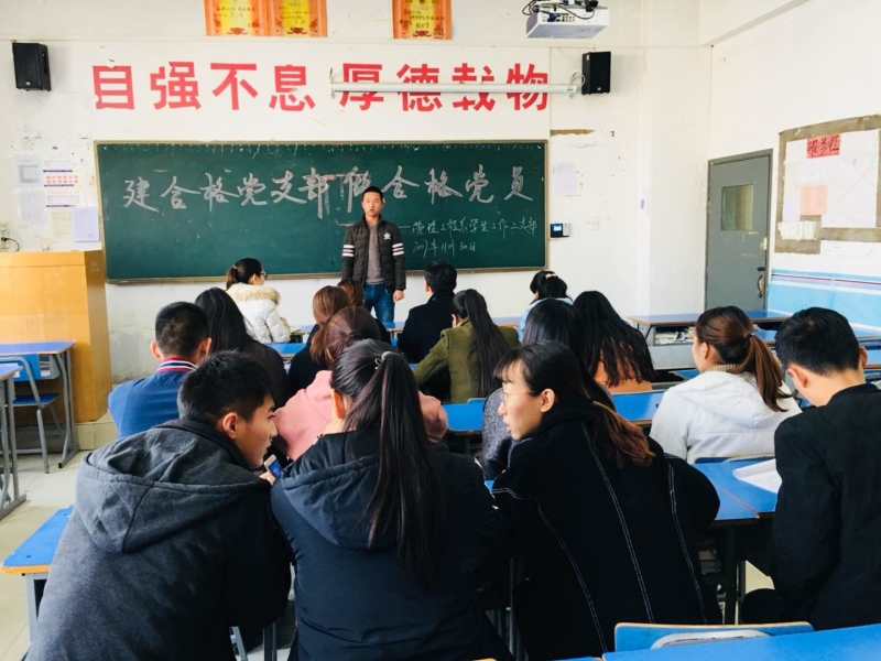 首先,支部书记张薇老师提出问题:本次党员发展对象的同学觉得我们员工工作二支部如何“建合格党支部,做合格党员”?同学们纷纷上台发表了自己的看法和建议,其中,有的同学提到了在生活中、学习中我们应该怎样做,给周围同学做一个好的榜样,同时也提升我们个人作为预备党员的党性与自觉性,有的同学结合自己在公司的工作经验并结合自己现在在顶岗实习等多个方面,来表述了我们如何做一个合格党员。宣传委员雷赐涛老师表达了自己的意见,发言中提到在党的建设伟大工程中,党支部作为党的基层组织,是党的全部工作和战斗力的基础,是党联系群众的桥梁和纽带,是党在社会基层组织中的战斗堡垒,这就要求我们必须以身作则严格要求自己,做好带头作用,树立好榜样。同时,雷赐涛老师结合自己生活中的实例来告诉我们在生活中如何做一个优秀党员。最后,大会由张薇老师总结。