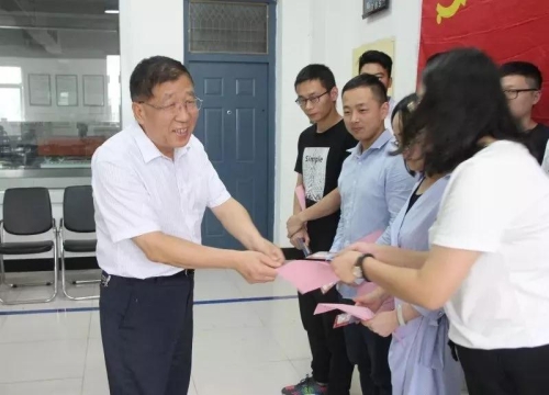 杨书记为新进教师赠送礼品