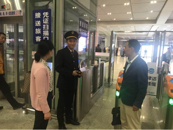 老师们与实习中的员工在站台上合影