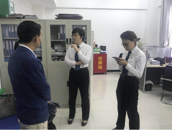 陈主任一行到劳人科对员工分配情况进行了解