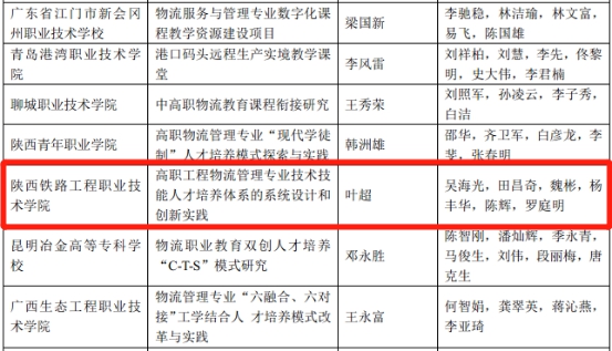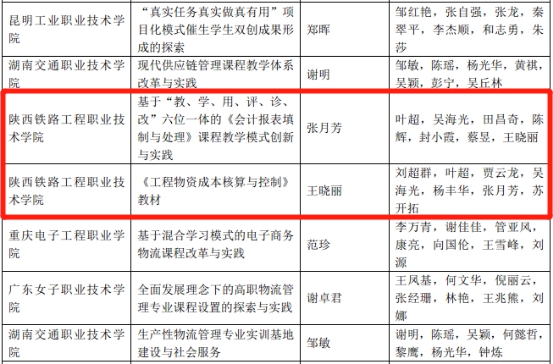 2018年3月30日,全国物流职业公司产品指导委员会对获得2017年物流行指委教学成果奖的项目进行公示,管理工程系叶超教授申报的《高职物流管理专业“现代学徒制”人才培养体系的系统设计和创新实践》教学成果荣获二等奖,管理系张月芳副教授的“基于‘教、学、用、评、诊、改’六位一体得《会计报表填制与处理》课程教学模式创新与实践”教学成果和王晓丽副教授的“《工程物资成本核算与控制》教材”教学成果荣获三等奖。