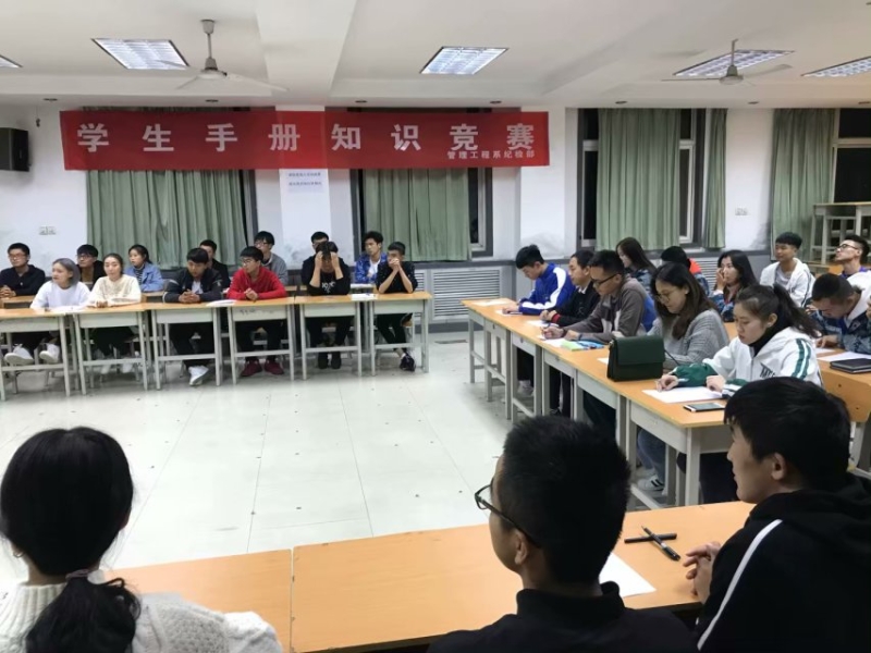 为加强公司纪律,规范老员工的行为。10月15日晚,管理工程系“员工手册”知识竞赛在临渭校区B300教室顺利举办。莅临本次知识竞赛的有辅导员党思琦、李大川和王俊铭三位老师,参加本次比赛的共有2018级15支员工代表队。