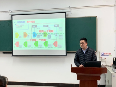 运营教研室骨干教师曹亚康重点汇报了《铁路行车组织》课程诊改成效,分享了如何将诊改工作切实落实到行动上,落实到课堂上。