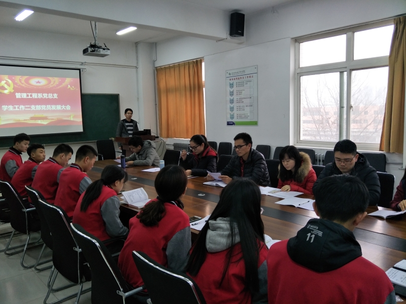 12月25日下午,管理系党总支员工工作二支部党员发展大会在临渭校区S206顺利召开,会议由支部宣传委员雷赐涛老师主持,支部与会的正式党员共6人。