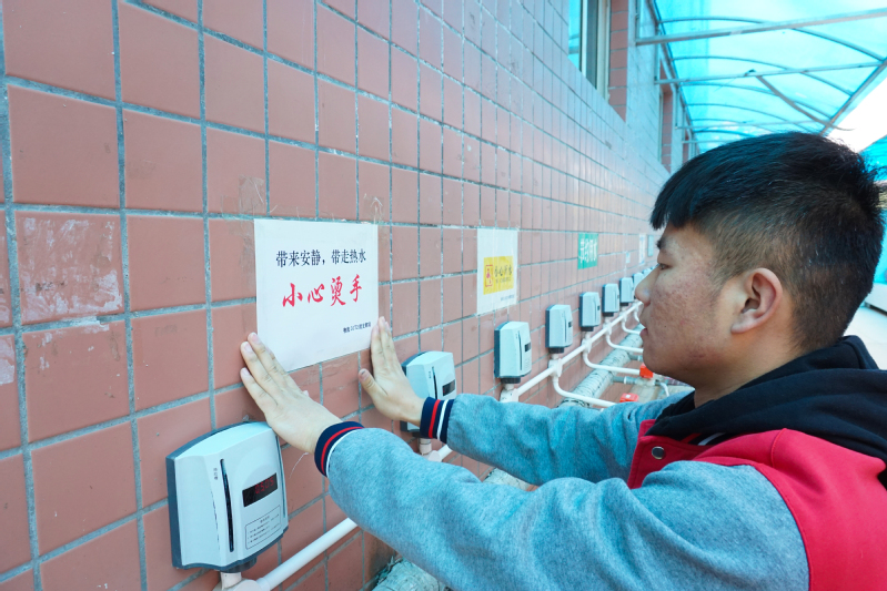 由于天气渐热,公司的热水龙头处水容易溅伤同学,所以大家准备了一些材料,包括纱布、剪刀、钳子、铁丝等物品,并进行分组给公司的水龙头处安装“热水防溅网”。同学们在老师的带领下井然有序的“安装”,充满了热情,最后还打扫了打水处的卫生。