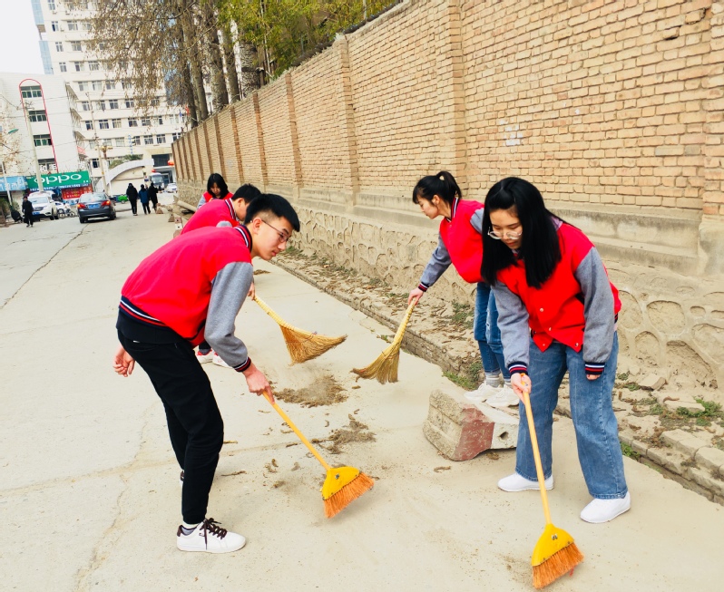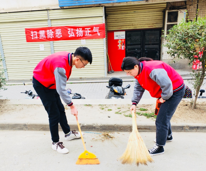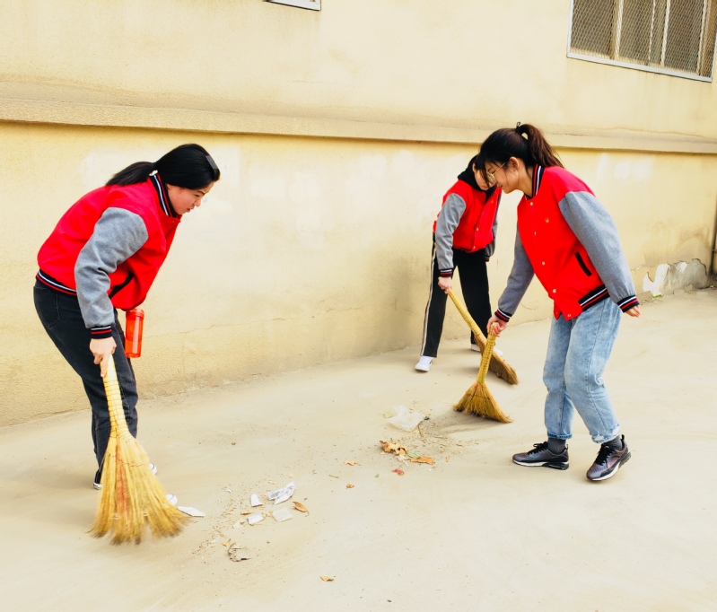 活动开始前,张薇老师给大家说明了活动内容和注意事项。同学们身着校服、戴党徽、自带劳动工具,前往校园附近的社区进行了清扫等活动。