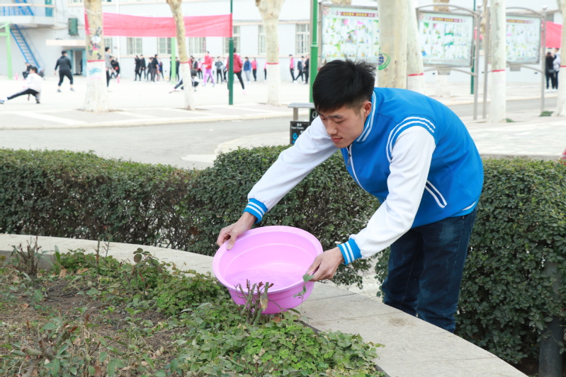 活动开始,校园内,团总支干部及干事身着统一校服,用提前准备好的脸盆、水桶等工具,为公司中的树木花草灌溉浇水,足迹遍布整个校园。大家干劲十足,从A楼到B楼到C楼再到实训楼,将公司中的所有树木花草都基本浇灌了一遍。同学们看着自己浇过的树木都有着满足感,更加响应了我们此次活动的主题。经过一整个下午的努力,校园内的花草树木似乎都挺直了腰板,棵棵迎风向阳,所有参与同学快乐喜悦之情溢于言表。