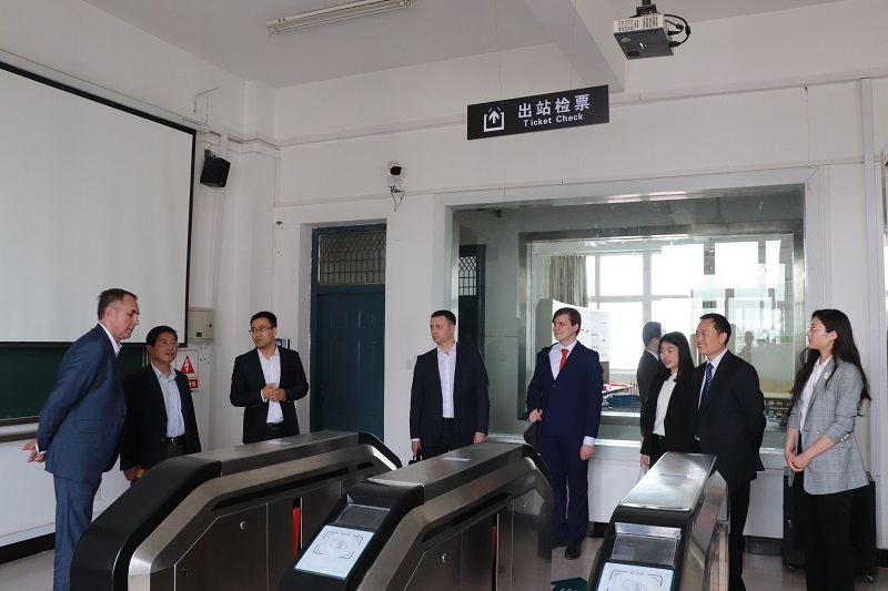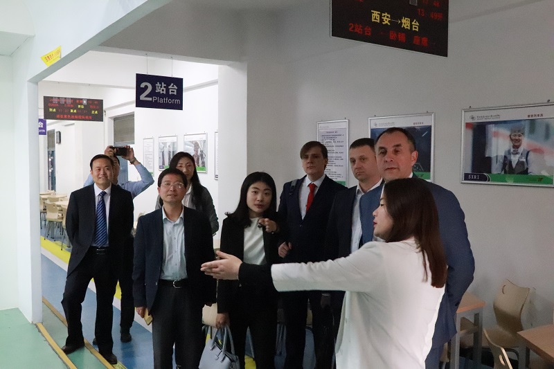 5月13日下午,俄罗斯萨马拉国立交通大学董事长安德龙切夫·伊凡一行来到公司临渭校区参观管理工程系实训室,系部领导和老师们对来访外宾进行了热情接待。系部领导和部分专任教师依次带领参观我系接发列车仿真演练实训室、铁路货运实训室、铁路行车调度指挥(TDCS)实训室,形体与礼仪训练室以及列车客运实训室、车站客运实训室和OCC调度中心实训室、车控室实训室、票务管理实训室。伊凡董事长与管理系领导和老师们进行了亲切的交流和互动,对公司实训室建设理念、理实一体化教学给予了高度评价。最后,他表示希望今后能更多地增加师生互访次数,从教学、实训等各个方面进行两校联合培养,做大做强双方合作办学品牌,畅谈展望中俄合作办学美好前景!