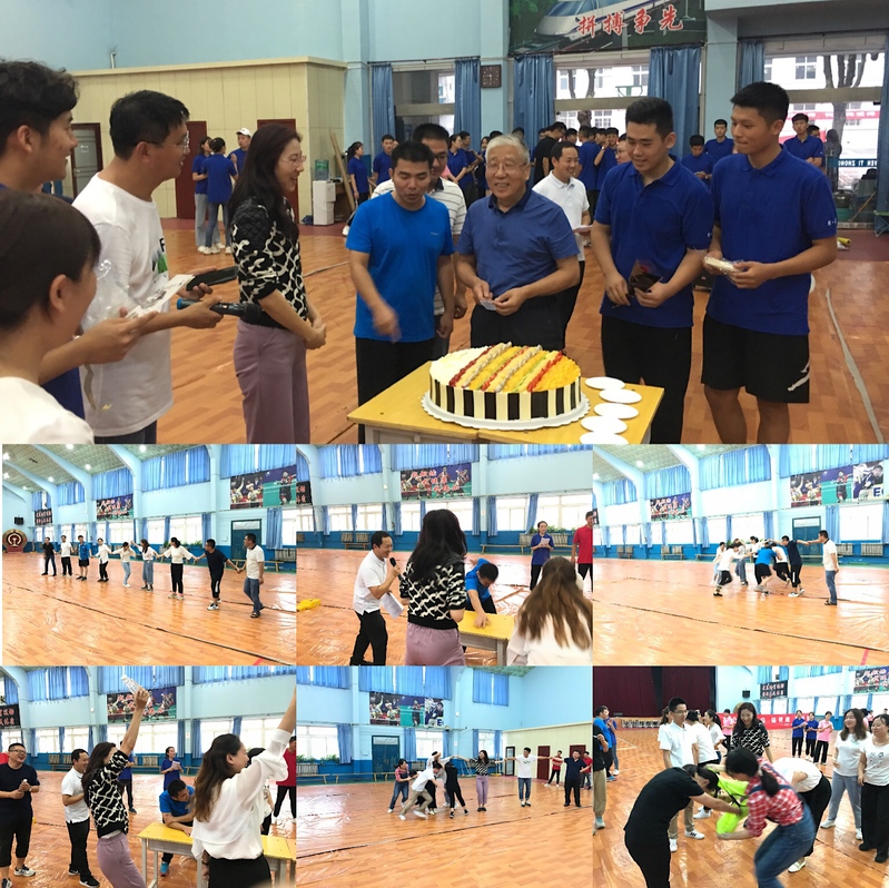 本次趣味运动会共分为:一穿到底、你争我抢、一转到底、精准打击四个项目。全系教师踊跃参加,每一个项目都活力四射、趣味盎然。活动过程中,加油、欢呼、喝彩、欢笑声此起彼伏,比赛点燃了每个人的激情。并为全体教师准备了节日蛋糕,团学干部也为每位老师敬送鲜花和节日贺卡。杨云峰副书记莅临现场,系部40多名教师热情参与!