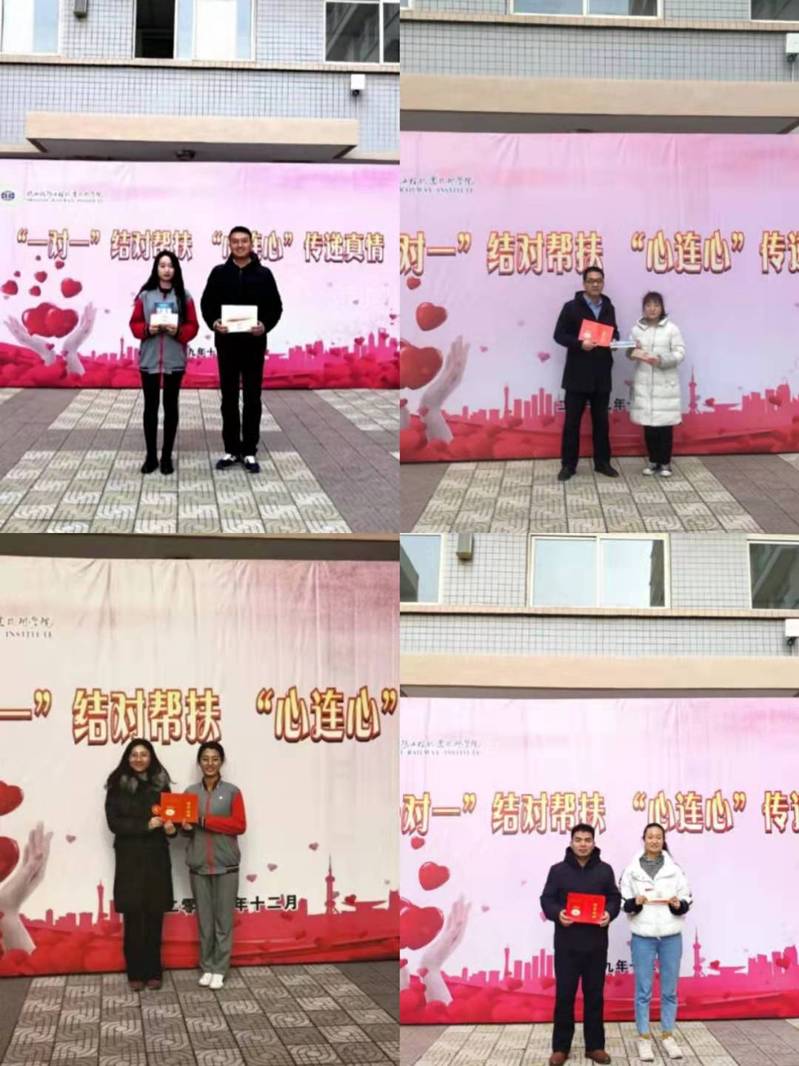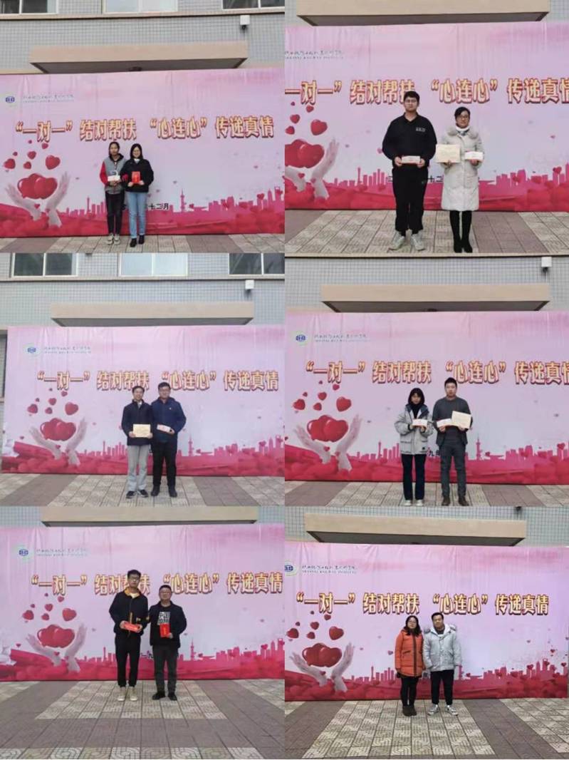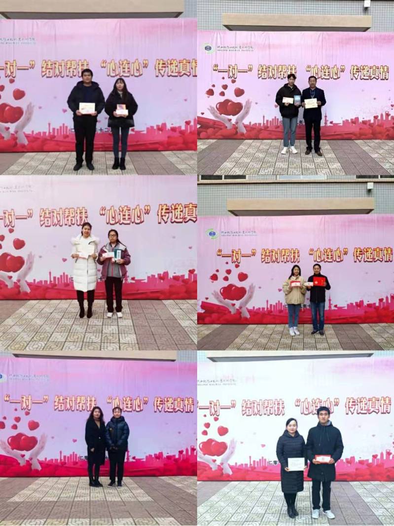 师生一起进行了气球吹杯子,蒙眼过障碍等游戏,增进师生之间的感情,参与结对帮扶的老师向帮扶员工发放爱心款,赠送励志书籍,师生互换结对证书,互留联系电话,现场气氛温暖感人。