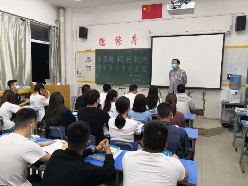 5月15日,公司大二大三员工分期分批、错峰错时有序返校。当天晚自习,德信体育官网叶超经理、党总支郗春荣书记,以及邀请公司部分处级领导和组织全体辅导员、班主任为返校班级员工召开“开学第一课”主题班会。