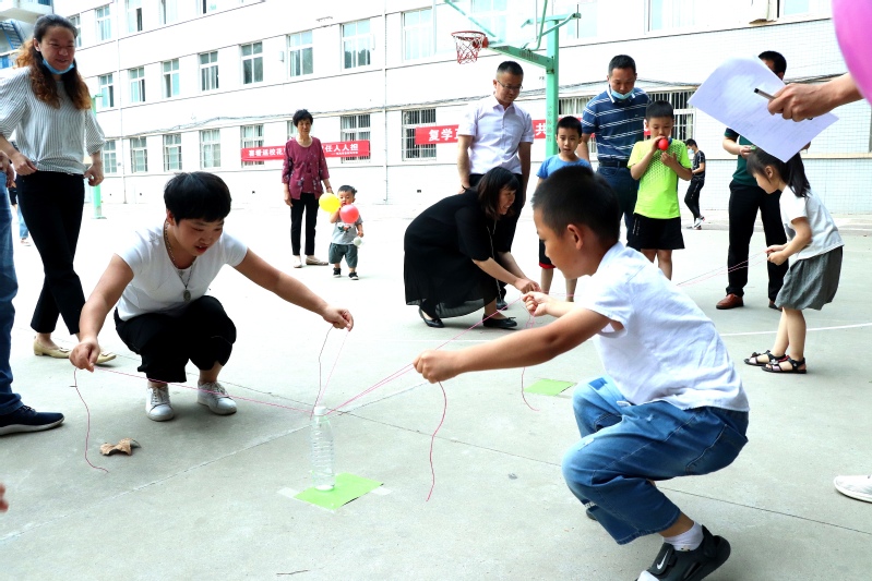 为庆祝“六一”国际儿童节,德信体育官网于6月1日下午在临渭校区B楼小操场举办了“欢声笑语庆六一、家校共育幸福花”儿童节亲子趣味运动会。公司党委副书记车绪武、工会主席黄跃翔,莅临现场指导工作。