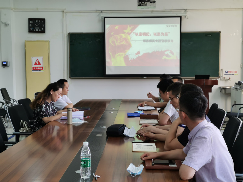 进一步落实习近平总书记来陕考察重要讲话精神,推动全面从严治党向纵深发展,深刻汲取王晓丽、贾云龙等案件教训,以案明纪,以案为鉴,全面加强党风廉政建设和师德师风建设,2020年6月16日,安全党支部党员教师在S206开展“以案明纪,以案为鉴”师德师风专题警示教育活动。以原公司教师违纪案例以及近年公司在招生、职称评审、员工管理等方面出现的案件为典型案例,在全体党员教师中深入开展警示教育活动,教育引导党员教师汲取教训、引以为戒,增强职业道德,坚决不越“雷池”、不踩“红线”,严格自律,立足本职,爱岗敬业,为人师表。
