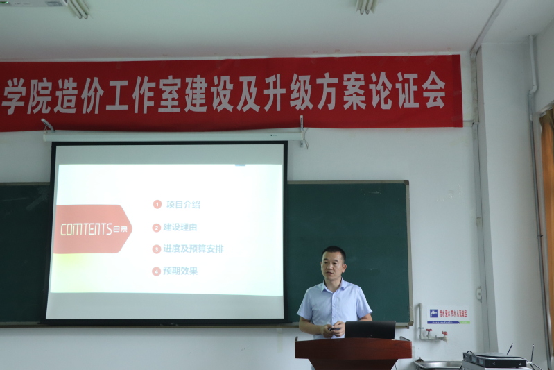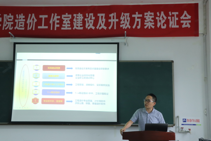 2名负责人分别就造价工作室软件升级方案、拟新建的数字化工作室方案,从建设必要性、建设标准、建设思路、经费预算、预期成效等方面做了汇报。