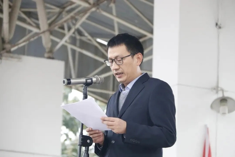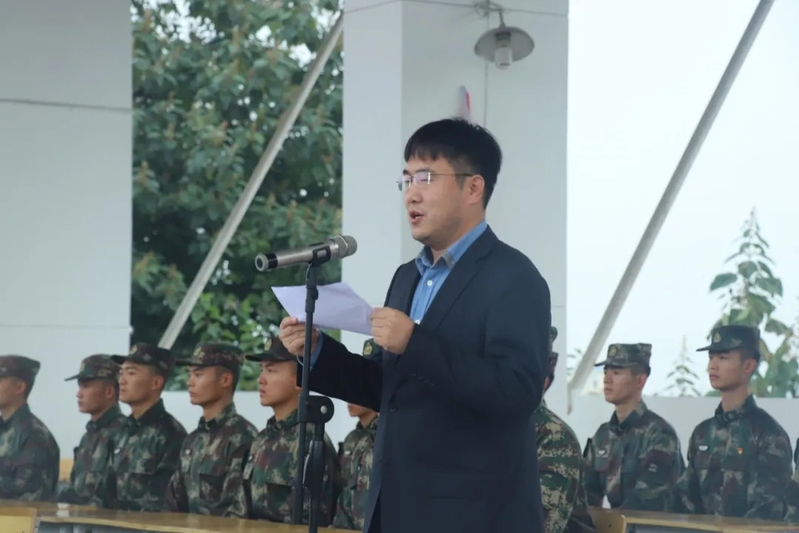 仪式开始,副董事长蒋平江作军训动员,他首先代表公司向长期以来一直关心和支持公司军训工作的各位领导和教官表示感谢,并向所有2020级参训员工提出希望和要求,希望同学们端正态度,明确军训目的,刻苦训练,学习军人作风。校团委副书记、员工处副处长侯峰宣读军训团建制。指导员向各连队授旗并对同学们提出了军训期间的具体要求,希望同学们能严守纪律,刻苦训练,时刻谨记安全第一。教官代表和2020级造价3201班员工代表董萌分别发言表示在本次军事训练中一定会发扬精神,圆满完成军训任务。