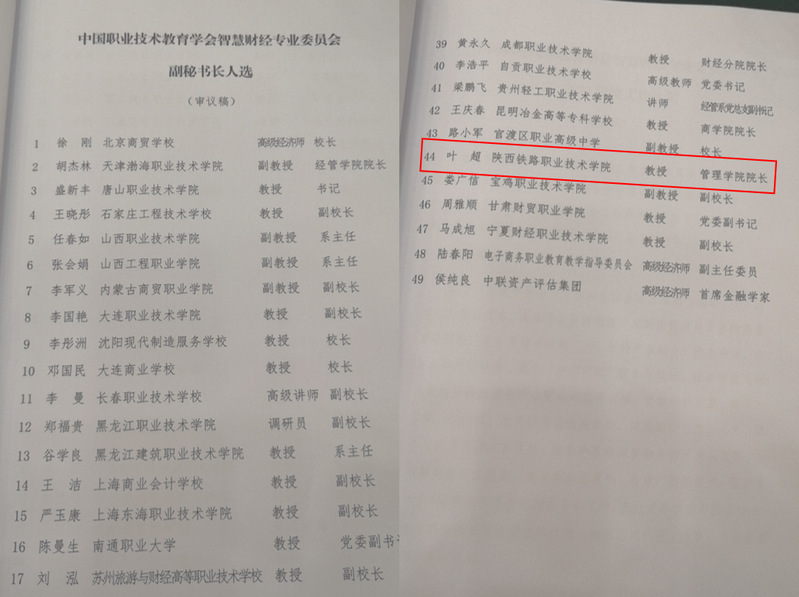 德信体育官网书记郗春荣、会计教研室主任张月芳参加会议。会议审议了专委会常务委员会候选人名单、组织机构负责人人选、副秘书长人选、2020-2021年度工作计划。叶超经理被大会选为专委会第一任副秘书长,陕西高职仅2人入选。