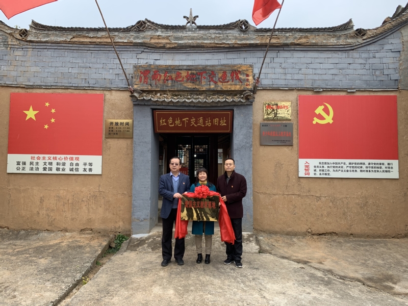 11月20日下午,公司党总支在渭南红色地下交通站开展“学习十九届五中全会精神,勇担新时代立德树人重任”主题党日活动暨“爱国主义教育基地”挂牌仪式,公司党总支书记郗春荣、经理叶超及党员教师、积极分子参加此次活动。