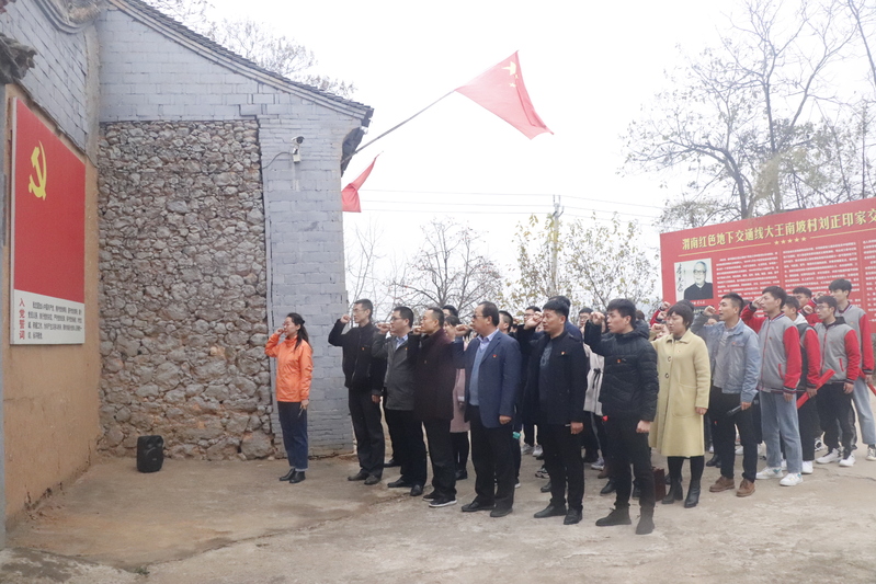 家住临渭区阳郭镇苌坡村(原大王乡南坡村)的革命先辈刘正印同志,是中国共产党的优秀党员,1946年9月,成功护送李先念同志巧过渭南的事迹就发生在这里。在红色地下交通站门口进行爱国主义教育基地挂牌仪式结束后,师生毅然肃立,怀着无比崇敬的心情,重温入党誓词,表达了对革命先辈的敬仰之情。