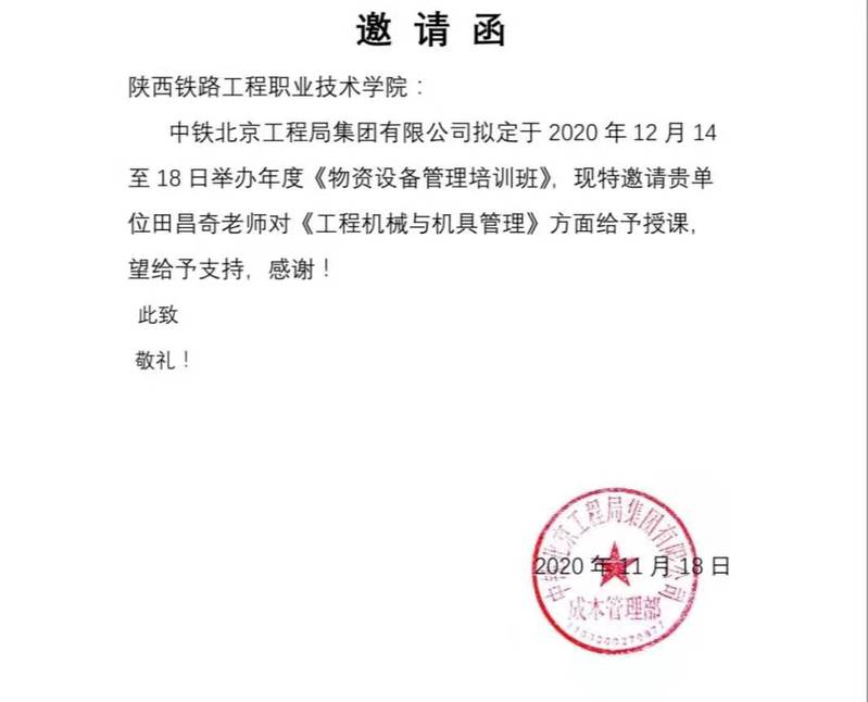 12月16日,公司田昌奇老师受中铁北京局邀请,对该企业物资设备管理人员进行培训授课。