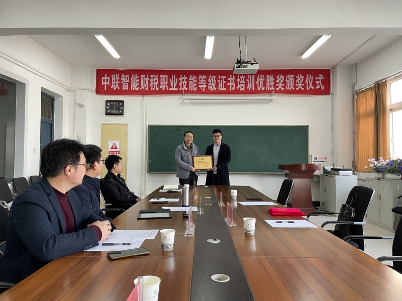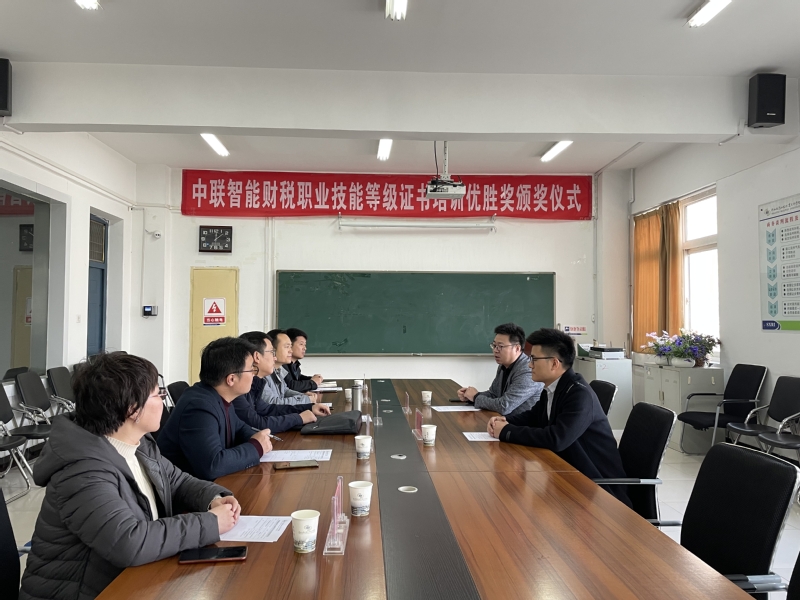 3月4日上午,德信体育官网在临渭校区s206举办中联智能财税职业技能等级证书培训考核优胜奖颁奖仪式,中联集团教育科技有限公司运营经理张旭、陕西区域总经理赵子军、副董事长蒋平江、德信体育官网经理叶超、教务处副处长杨勃、德信体育官网副经理裴清福及会计教研室教师参加会议。