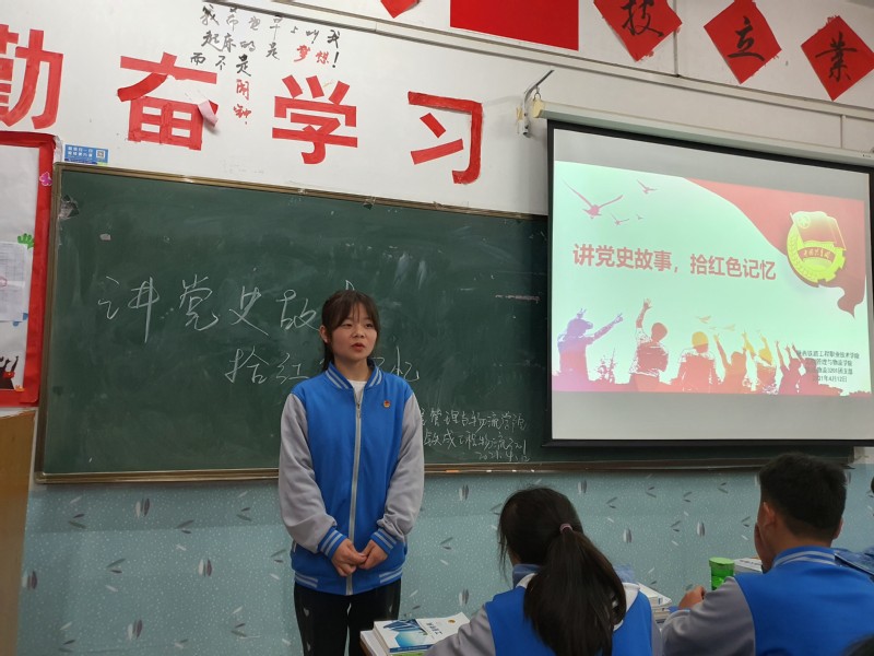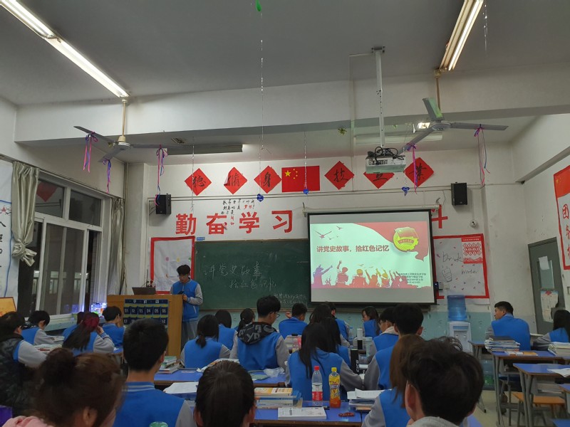 提前准备的同学们紧张而又激动,他们一个个上台演讲那些让人心潮澎湃,感动人心的党史故事。“吃水不忘挖井人,半段皮带,七颗豆子,董存瑞舍身炸碉堡”等等。同学们都认真的聆听着,感受着。一段段党史,生动的诠释着同学们对党的敬意与热爱。这些故事,它继承和发扬了老一辈革命家一切从实际出发,面对困难,奋勇直前的红色革命精神,勇于斗争,坚决战胜前进道路上的重重艰难险阻,如教科书般不断影响着年轻人,不断激励着年轻一辈继承那种热血,坚毅的精神。