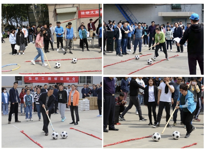 本次趣味运动会,将会有四种专项趣味比赛,个个妙趣横生,它们分别是移形换位,双推雪球,气球爆爆乐,足球接力赛。每一名老师参与其中,玩在其中,乐在其中,场下的同学们情绪高涨,热情洋溢的为每一名老师加油喝彩。