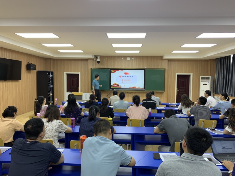 6月21日下午,公司党委书记王津走进德信体育官网,在临渭校区B500教室为公司党员师生讲了一节生动、深刻、意义非凡的党课。会议由公司党总支书记郗春荣主持,全体教师党员参加了现场学习。