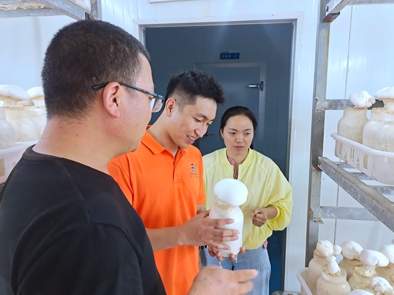 实践团队员坚信“自己动手,丰衣足食”,上午首先为自己做了一顿简单的早餐,接着前往陕西天吉龙生物科技有限公司白灵菇生产基地,在基地观看了特色宣传片、参观了白灵菇的培育环境以及制作菌种、配料、装罐、灭菌等生产操作流程。下午,前往木耳种植示范园,在示范园负责人的带领下,队员们对木耳的采摘、销售进行了采访和调研,同时,利用新媒体技术为当地特色农产品拍摄了宣片镜头。