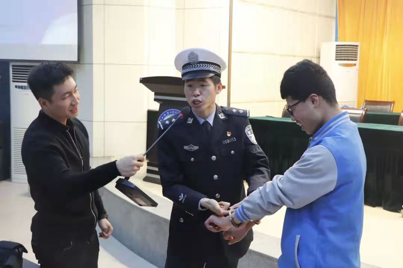 随后,在问答互动环节中辅导员及员工,纷纷提出自己的看法和不解。现代的手铐为了避免被轻易的开启,大多数具有双重锁的功能。手铐的初始状态与铐上后的状态为单重锁,此时铐环是可以单向旋转,以铐住人的手腕与铐紧人的手腕。