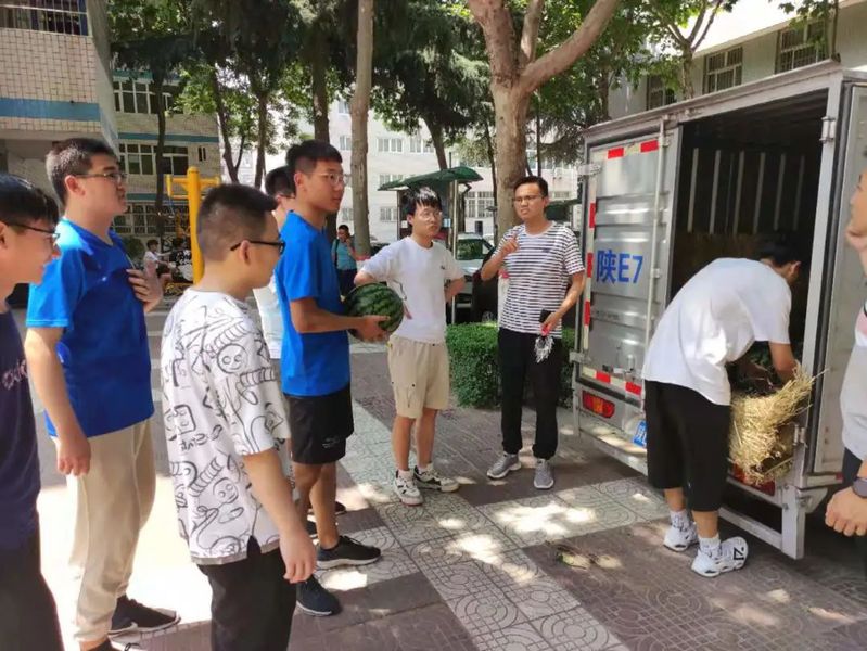 各位老师,来到2号、3号、4号公寓楼门前为同学们送去一个个又大又甜的西瓜,现场气氛热烈,每到一处,郗春荣书记、叶超经理都代表公司老师将关怀送到了同学们手中,并且叮嘱大家在紧张学习的同时,要特别注意做好自身的防暑降温工作;同时希望大家,克服炎炎烈日,努力学习,放平心态,积极准备马上到来的期末考试。