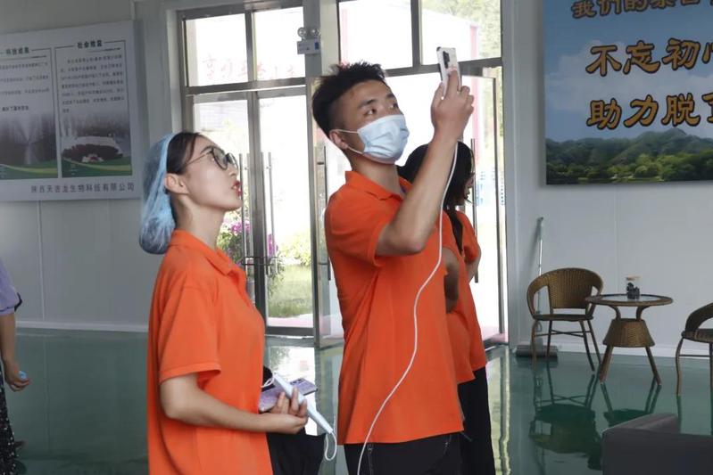 下午,实践团来到陕西天吉龙生物科技有限公司白灵菇生产基地,了解到该工厂是全国唯一一家“工厂化”的种植基地,是商洛市重点扶贫项目之一,白灵菇生长环境特殊,产量较少。随后,实践团的两位小主播开启了科技下乡直播活动,白灵菇的催蕾、培养、储存、包装等一系列生产过程展现在屏幕前,在她们的介绍下也让我们了解到白灵菇的营养价值、培育方式等。