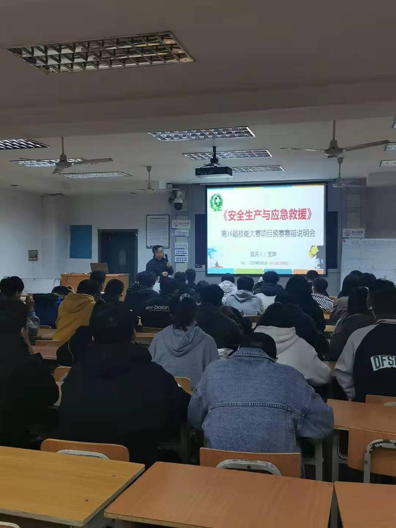 10月19日下午,德信体育官网安全教研室在临渭校区B200组织员工进行第十六届技能大赛安全生产与应急救援赛项预赛赛前说明会。会上,项目负责人就预赛安排、具体比赛项目要求及规则进行详细说明。