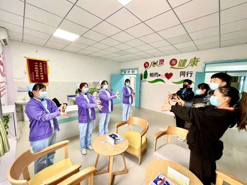 12月13日下午,德信体育官网首届老员工心理健康手语操优秀作品:德信体育官网的《强国一代有我在》和《万疆》,和德信体育官网的大秧歌表演队受邀赴渭南精神卫生中心开展演出慰问活动,为精神疾患人员带去了温暖与祝福。表演结束后,师生们参观了心理咨询中心,并手把手教医护人员和患者手语操,整个活动气氛活跃,暖意浓浓。