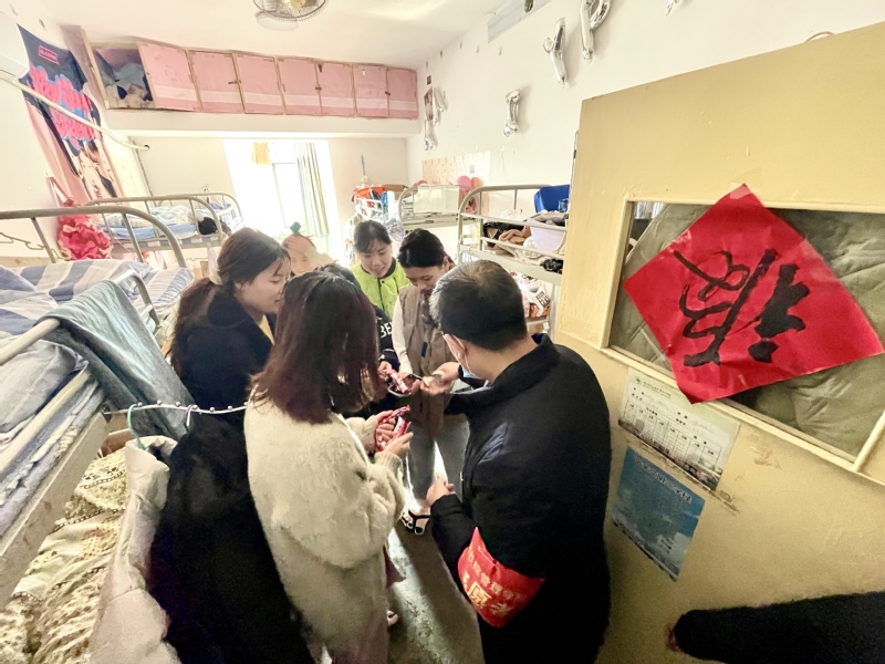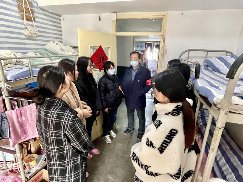 1月2日上午,德信体育官网进入员工公寓开展送温暖慰问活动。公司党总支书记郗春荣、副经理裴清福、院办主任田昌奇、学工办主任郭联俊以及辅导员进入女生公寓给女生送去了爱心棒棒糖。在走访员工宿舍的过程中,师生们聊家常、问学业、谈发展,朴实的问答和暖心的叮嘱拉近了师生的距离。
